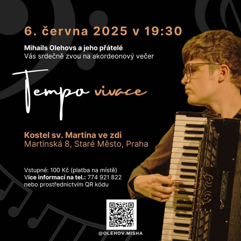 Zveme vás na jedinečný koncert našeho klienta Mihailse Olehovsa a jeho přátel, který se uskuteční v pátek 6. června od 19:30 v Kostele svatého Martina ve zdi.
