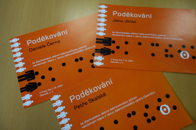 I v tomto složitém roce jsme bez přerušení zajišťovali oba naše programy a školili nové dobrovolníky. Proto chceme poděkovat všem, kteří se zasloužili, aby naše Dobrovolnické centrum mohlo poskytovat kvalitní služby svým klientům. Jsou to především dobrovolníci, kteří nezištně pomáhají nevidomým lidem při zajišťování jednorázových doprovodů, nebo se v rámci dlouhodobé spolupráce schází se svými klienty pravidelně. Jejich pomoci si vážíme a těšíme se na další spolupráci!