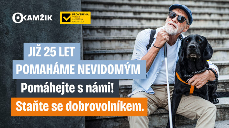 Okamžik je nezisková organizace působící na území hl. města Prahy. Již pětadvacátým rokem pomáhá lidem se zrakovým postižením při jejich začleňování do běžného života, a to prostřednictvím dvou sociálních služeb a dalších projektů. Od roku 2001 provozuje největší dobrovolnické centrum pomoci nevidomým, poskytuje odborné sociální poradenství a podporu při ztrátě zraku. Dále organizuje pomoc nevidomým rodičům při vzdělávání jejich dětí a v rámci Centra aktivního života pořádá pro lidi se zrakovým postižením jednorázové i pravidelné vzdělávací akce, volnočasové aktivity a poskytuje jim individuální podporu. Okamžik tvoří záměrně nepočetný tým vidících i nevidomých lidí, které spojuje chuť vymýšlet a realizovat projekty šité na míru lidem se zrakovým postižením. Více na www.okamzik.cz.
