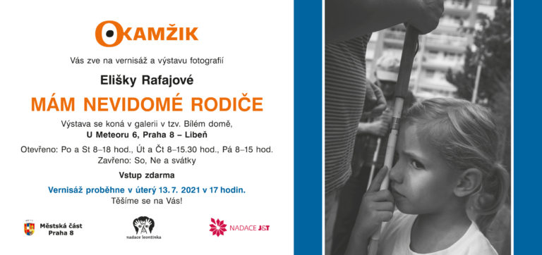 Zveme vás na vernisáž a výstavu fotografií Elišky Rafajové „MÁM NEVIDOMÉ RODIČE“. Výstava se koná v galerii v tzv. Bílém domě, U Meteoru 6, Praha 8 – Libeň.