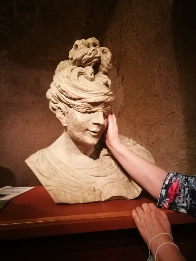 V úterý 12.10. jsme s klienty navštívili Schwarzenberský palác, kde jsme měli možnost si prohlédnout  hmatovou expozici Doteky baroka. Soubor vystavených odlitků je určen právě návštěvníkům se zrakovým postižením. Vývoj sochařství během 17. a 18. století představuje ve zkratce 14 exponátů nejvýznamnějších osobností této epochy. Nejvýrazněji je v kolekci zastoupen náš největší barokní sochař, Matyáš Bernard Braun, jehož sochy lákají k doteku bohatstvím a členitostí svých tvarů. Jádro tvoří pět vybraných alegorických hlav z proslulého cyklu Ctností a Neřestí ve východočeském Kuksu: alegorie Moudrosti, Spravedlnosti, Cudnosti, Obžerství a Lenosti. Expozice je opatřena rozšířenými popiskami v Braillově bodovém písmu a ve zvětšeném černotisku. Černotiskové popisky jsou vyjímatelné, aby si každý návštěvník mohl nastavit optimální vzdálenost pro čtení. Celý soubor spojuje vodící lišta, u každé popisky je pro snazší orientaci plastická značka. Nám se navíc po celou dobu věnovala kurátorka této expozice Mgr. Jana Klímová. Závěrem si navíc v lektorském oddělení mohli klienti zkusit vymodelovat z hrnčířské hlíny reliéf hlavy.
