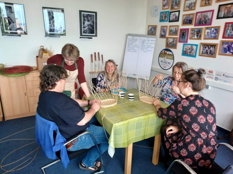 Zábava a pohoda při pletení košíků. Tentokrát jsme si troufli na košíky s UŠIMA.