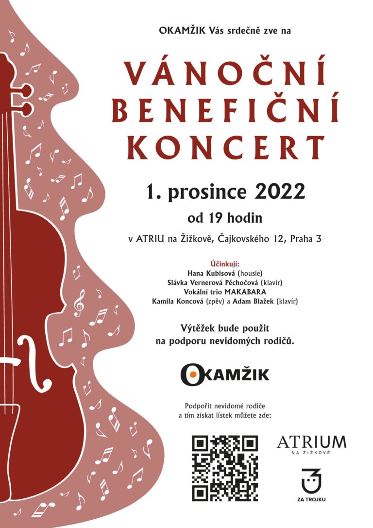 Zveme Vás na náš Vánoční benefiční koncert na podporu nevidomých rodičů, který se uskuteční ve čtvrtek 1.12. od 19 hodin v ATRIU na Žižkově.