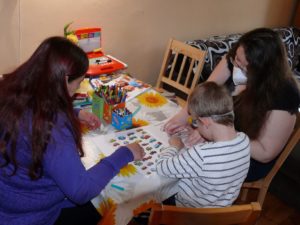 Díky zapojení do tohoto programu mám najednou obrovské možnosti vrhat se s dětma i do věcí, které by se beze zraku těžko zvládaly nebo bych je nemohla ani s dětma podnikat. Díky možnosti asistentky mám možnost s dítětem prožít věci, které bychom sami nezvládli. A zrovna minulý týden jsem dostala skvělou zpětnou vazbu, že dcerka nádherně maluje, že umí namalovat krásně x věcí a že nechápou, kde se to naučila. 🙂